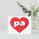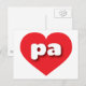 This postcard features a vibrant red heart containing the bold, white, rounded lower case letters pa, a playful abbreviation for Pennsylvania, the keystone state. The reverse side of the postcard is blank inside awaiting your customized text or handwritten sentiments.