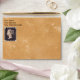 Features an image of the British "Penny Black" in mint condition on an old paper background. Add your own address. The Penny Black was the first adhesive postage stamp used in a public postal system. The Penny Black was issued in London on May 1, 1840. Before 1840 it was normal to pay for postage upon receipt of a letter. Postage was calculated by the number of sheets and the distance travelled. The idea of a pre-paid postage stamp was included in a set of proposals to reform the British postal system in 1837. Private postal systems may have used adhesive stamps before 1840. An engraving of Queen Victoria as a 15-year-old former princess was chosen as the design for the first stamp. It was believed that the design would be difficult to forge. All stamps of the United Kingdom British bear a picture or silhouette of the reigning monarch in lieu of the country name. All other postage stamps name their country of origin. The Penny Black was in use for only a little over a year. It was found that a red cancellation was hard to see on a black background and the red ink was easy to remove, making it possible to re-use stamps after they had been cancelled. In 1841,it was replaced by a stamp bearing the same design, the Penny Red, but printed with a reddish ink. The Penny Red was cancelled with black ink, much harder to remove. The Penny Black is not a very rare stamp. A total of 286,700 sheets with 68,808,000 stamps, were printed and a substantial number of these have survived, largely because envelopes were not normally used: letters in the form of letter sheets were folded and sealed, with the stamp and the address on the obverse. If the letter was kept, the stamp survived.