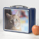 This is a standard metal lunchbox that appears to work just fine. We designed this box ourselves with an uploaded photo and custom text on the front and back. It looks absolutely beautiful except the front of the lunchbox is not centered like it shows in the photo. The print borders don't align with the inset flat part of the box where the preview photo online showed it perfectly centered in there. The back looks nice and centered though.