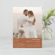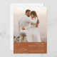 This exquisite invitation captures the essence of your special day with its clean lines, sophisticated typography, and subtle tropical leaf sketches. The rich bronze or burnt orange hue sets the tone for a warm and inviting celebration.