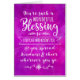 Laissé quelqu'un sachez que vous pensez à eux et quelle bénédiction ils sont dans votre vie avec cette conception élégante de typographie de style de lettrage de main. L'avant de la carte comporte le message dans le blanc, "vous êtes une bénédiction si merveilleuse à chacun qui sait que vous et vous écartez la gentillesse et vous encouragez là où allez." La conception apparaît sur l'arrière - plan pourpre numériquement texturisé d'aquarelle.