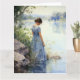 Cette carte d'art évocatrice présente une scène d'aquarelle poignante d'une jeune femme en robe bleu clair, debout au bord d'un lac, regardant attentivement en bas. Le style d'aquarelle douce exprime magnifiquement l'humeur tranquille et introspective, qui laisse présager une douceur ou une solitude douces. Cette carte est adaptée pour envoyer un message de compréhension tranquille, pour des moments de réflexion, ou pour toute personne qui apprécie l'art qui touche à des moments humains sereins et émotionnels.