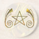 Representing the element of Earth in the Tarot, the pentacle is also associated with prosperity and abundance and groundedness. The pentacle is often confused with the pentagram. The pentagram is the mathematical design itself, while a the pentacle is an object in the shape of a pentagram. The paten is a dish for holding cakes and other offerings or for charging material items and often has a pentacle or pentagram inscribed upon it.