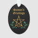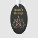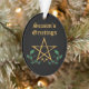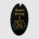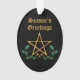 Celebrate the season with this enchanting oval-shaped Christmas ornament, featuring a striking witchy star and leaf decoration set against a rich black background. The words "Season's Greetings" are displayed elegantly above the design, perfectly blending festive spirit with a pagan and Wiccan vibe. Ideal for those who appreciate mystical, nature-inspired aesthetics, this ornament adds a touch of magick to any holiday décor. Whether for yourself or as a thoughtful Christmas gift, this unique piece is perfect for anyone looking to bring a bit of witchy charm to their celebrations.