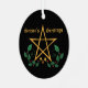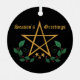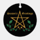 Embrace the mystical side of the holiday season with this round Christmas ornament featuring a witchy star and leaf design resembling a pentacle against a deep black background. Above the enchanting motif are the words "Season's Greetings" in elegant font, making it a perfect blend of festive cheer and pagan or Wiccan vibes. Whether you're decorating your own tree or looking for a unique and meaningful Christmas gift, this ornament adds a touch of magick to any celebration. Ideal for those who appreciate spiritual and nature-inspired designs, it’s the perfect addition to a witchy holiday décor!