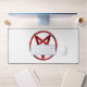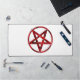 Pentagramme rouge, inversé, texturé en cercle, sur arrière - plan blanc. Symbole occulte 666