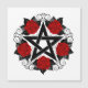 Black pentagram with pattern, decorated with blooming, red roses with leaves on white background. Tattoo style.
