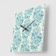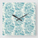 Peonies and butterflies block print, lagoon Blue Square Wall Clock