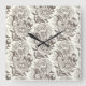 Peonies and butterflies block print, umber on off square wall clock