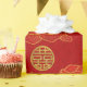 Peonies and Gold Double Happiness Symbol Pattern Wrapping Paper