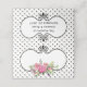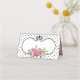 Pretty folded place card done in a black on white small polka dot pattern, with a vintage style black framed text area decorated with a lovely bouquet of pink peonies. Personalize the custom text, on the back of the card to read what you want. Personalize the front of each card, by hand, for your wedding reception.