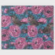 Peonies and wrens on blue wrapping paper