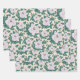 C'est un motif de pivoines blanches graphiques avec des feuilles verts sur un arrière - plan beige clair.