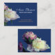 Elegant, classy floral business card. Design with custom background colour, white, pink peony flowers blossom photography.