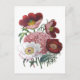 Old-fashioned botanical illustration of peonies in red, pink and white