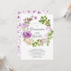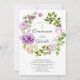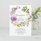 Belles invitations à la communion aquarelle fleurie avec une couronne de tourbe violette et crème et une croix d'or.