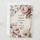 An elegant design of peony flowers in an oval shape in pastel colours. The front of the card has the invitation, names of bride and groom, date and address of the big day. The back of the card has the dress code, but all the text is editable so you can take out and put whatever you need to suit your specific needs. Generative content.