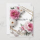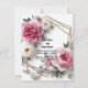 Discover an enchanting wedding invitation design adorned with a geometric wreath, highlighted by watercolor gradients of pink peonies and white roses with foliage. This floral invitation awaits your personal touch for an unforgettable celebration.