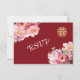 Watercolor peony flowers on a maroon red background. RSVP Chinese Wedding Card.