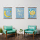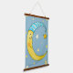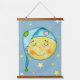 Trois tapisseries suspendues qui correspondent à la pépinière de votre petit. Lune avec étoiles, Dream Big, et une autre lune avec un visage souriant avec étoiles, les couleurs sont bleu et jaune.