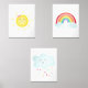 Ce jeu d'imprimés doux présente mon arc-en-ciel dessiné à la main, le soleil et les nuages.