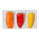 Poivrons de couleur différente placés sur une planche à découper grise Image © Angelika Stern