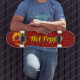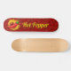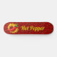 Red chili pepper with circle of flame on removable seamless pattern background. Custom text.