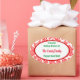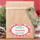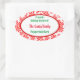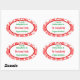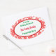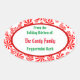 An oval, custom baking, cookie or recipe stickers with red and green blackletter on a red and white holiday pattern of peppermint candies.