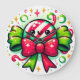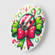 A whimsical peppermint candy character with red and white swirls, smiling sweetly beneath a festive bow—green on the sides, red in the center, and sprinkled with sparkling stars. Surrounded by colorful crescent moons, stars, and dots in holiday hues, this vibrant design radiates cheer and magic, perfect for seasonal cards, stickers, or fairy-themed winter collections.