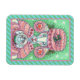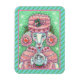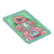 PRETTY IN PEPPERMINT PINK, FRENCH POODLE WITH HER SNOWMAN SNOWGLOBE. CHRISTMAS DOG MAGNET Light Teal/Green Candy Cane Border....Look For Matching Items Susan Brack Design