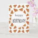 Cette carte d'anniversaire comporte les mots "Joyeux anniversaire" sur le devant avec des tranches de pizza pepperoni sur un arrière - plan blanc. L'intérieur dit : "J'espère que votre journée spéciale est remplie de tout ce que vous aimez. Joyeux anniversaire !".