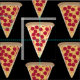 Pepperoni Pizza Slice Pattern on Black Fabric