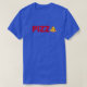 Cool t-shirt printed with a typographic logo of the word pizza where the letter A is replaced with a slice of pepperoni pizza. Yum!
