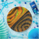 Imagem com tons amarelos e marrom submetida ao efeito 'mosaico pequeno' e alterada de forma que parte deles se cruzam, e recebeu um efeito que se assemelha à sombra e em outra parte da imagem foram adicionados pequenos detalhes que se assemelham a uma textura de fundo semelhante a uma placa metálica amassada ou martelada.
