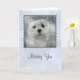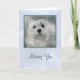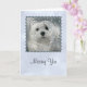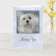 Cette carte de voeux mignonne comporte la perce-neige, un petit chien maltais doux. Elle regarde fixement hors d'une fenêtre dans la pluie avec une expression plutôt mélancolique sur son visage qui est tout à fait en accord avec "vous manquer carte".