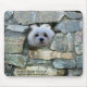 Ce tapis de souris comporte la perce-neige, un petit piaulement maltais doux par un mur en pierre.