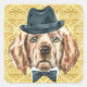 Percival is a Labrador Retriever that begs to be taken seriously...hence the fancy hat and bow tie. Digital watercolor dog portrait on gold patterned background