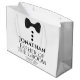 Ce sac cadeau est conçu pour le Père de la Chambre. Le design comporte du texte noir et une cravate noire avec des boutons sur un arrière - plan blanc. Inclut un espace pour son nom ainsi que le nom du couple et la date du mariage. Remplir avec des cadeaux, des faveurs, des bonbons, de l'alcool, ou toute autre sorte de swag mariage. Excellente façon de le remercier d'avoir fait partie de votre fête de mariage.