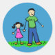 Père et fille se tiennent la main. La chemise de l'homme dit "papa" et la robe de la petite fille dit "moi". Les parents et les enfants sont asiatiques avec la peau claire. Cette image de famille de parents et d'enfants est également disponible dans plusieurs options de famille ethnique, y compris un simple dessin sur la ligne Personnalisez les autocollants de famille avec des noms de famille ou un message personnel pour les cadeaux spéciaux de père ou de père ou de père et de fille. Vous pouvez faire des autocollants personnalisés pour un cadeau spécial de Fête des pères, nouveau papa et/ou nouveau bébé, Réunion familiale ou d'autres cadeaux d'art familial customisés!