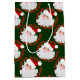 Père Noël Face Circles-Père Noël sport est le chapeau de Père Noël rouge et lunettes de parties scintillant or. Le texte rouge et or tourne autour et dit : Ho, Ho, Ho, Joyeux Noël ! L'arrière - plan est vert solide. Ce sac cadeau Père Noël est disponible avec assortiment de couleurs arrière - plans. Choisissez n'importe quelle taille Zazzle sacs cadeaux disponibles.