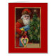 Cette Père Noël élégante, habillée de rouge traditionnel, offre des cadeaux de Noël et un arbre éclairé à la bougie. C'est une belle image pour la décoration de vacances et la correspondance. Père Noël souhaite à tous un Joyeux Noël en lettres dorées tandis qu'une étoile brillante de Noël brille dans l'arrière - plan.