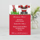 Une invitation de vacances d'amusement avec Père Noël et jambes et pieds d'elfe avec la frontière rouge, blanche et verte de bâton de menthe poivrée et l'arrière - plan rouge. créé avec artwork©delightful-doodles.com original