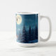 Le traîneau de père Noël traverse une pleine lune, conduit par des rennes galopant à travers le ciel étoilé. En dessous, des lumières scintillantes scintillent sur le sol enneigé.