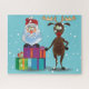 Santa Claus mignon avec rennes et cadeaux colorés.