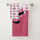 Ce bel ensemble de serviettes de bain de Noël est la façon parfaite de rendre votre salle de bain joyeuse et lumineuse! Il comprend un grand Père Noël rose au centre d'un arrière - plan viva magenta avec des pois blancs, une serviette à main avec un motif du Père Noël sur un arrière - plan blanc, et un linge avec des bordures roses, votre monogramme, et la même Père Noël mignonne. Ces serviettes ajoutent une touche festive parfaite à votre décor de salle de bain et rendent le moment du bain amusant !