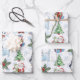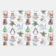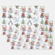 Papier d'emballage de Noël coloré avec des amis de Noël : Père Noël, Snowman, Père Noël Cat, Père Noël Mouse et Penguin.
