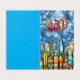 Le Père Noël monte un traîneau tiré par deux rennes, surplombant une ville vibrante et capricieuse aux bâtiments colorés. Le ciel nocturne est rempli de flocons de neige et d'étoiles, créant une atmosphère magique et festive. Photoshop Art numérique CS5
