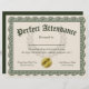 Perfect Attendance Certificate, Customize and fill-in your name, award and other info online. Beautiful woodcut rosettes artwork antique style border. Customized traditional perfect and outstanding attendance to recognize students at school or sports achievement award certificate template.