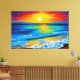 Beautiful beach at sunset with waves lapping the shore and the sun low in the sky. Perfect scene for relaxation or meditation.