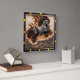 Introducing a stunning clock that captures the spirit of strength and beauty, featuring a magnificent Andalusian horse leaping over a weathered stone wall, set against a dramatic backdrop of flames. This unique timepiece is framed by a sleek ½-inch flat black wooden border, which enhances its striking visual appeal. The embedded wood showcases intricate carvings with a charred, textured grain, highlighted by rugged burn marks in shades of red, grey, and black, creating a captivating contrast with the lighter wood. This clock is not just a functional item; it is a work of art that brings a sense of dynamism and elegance to any space.